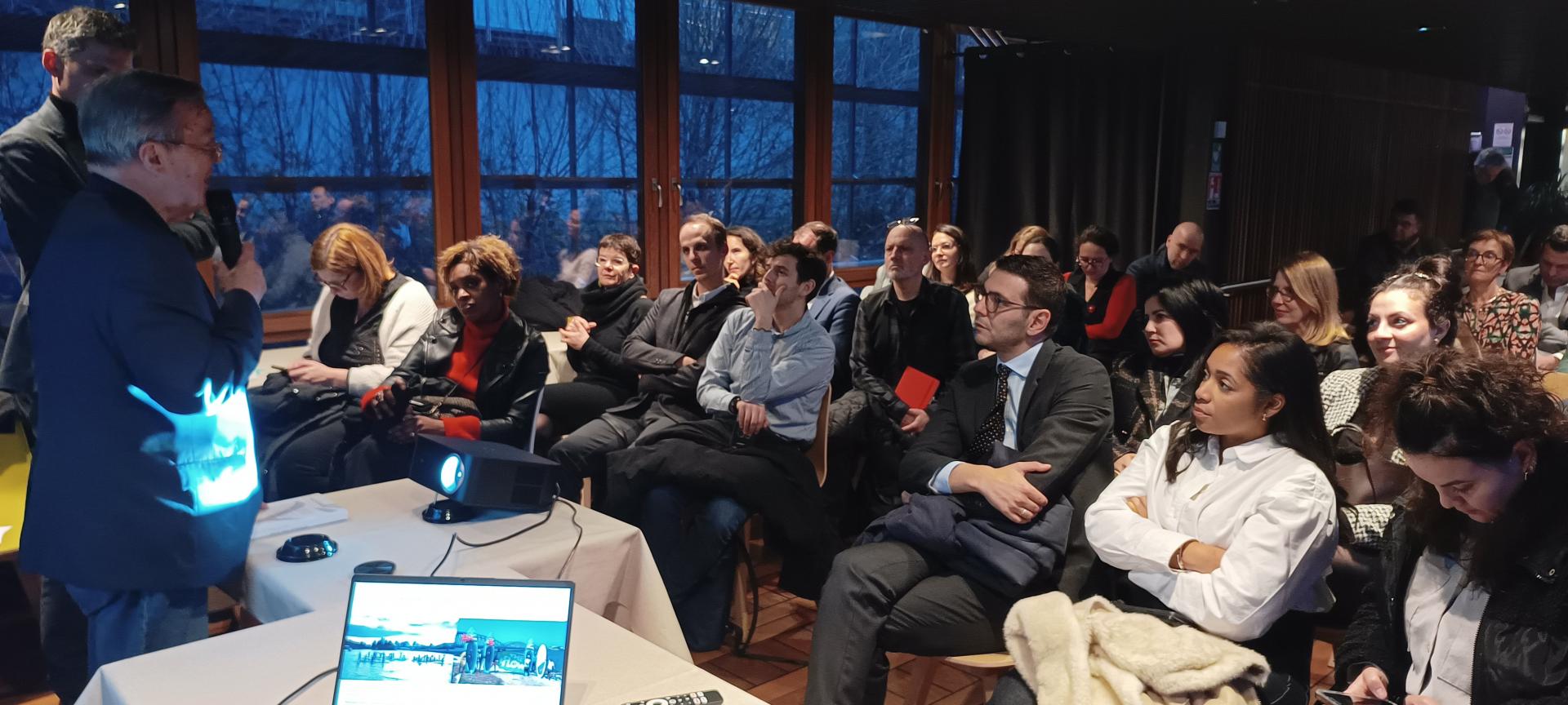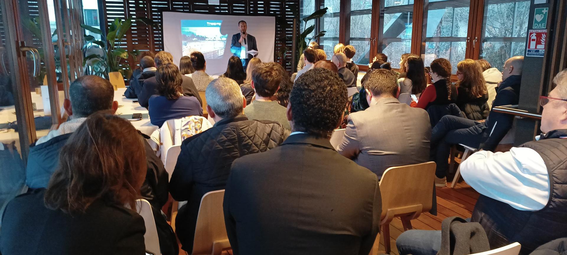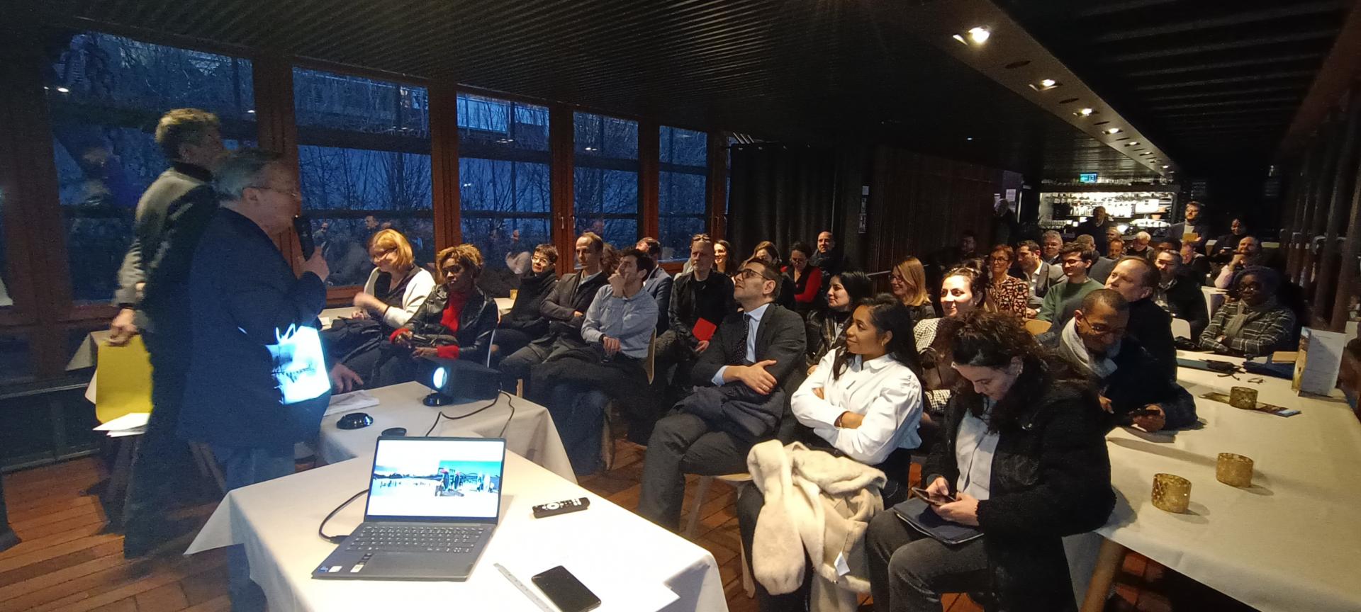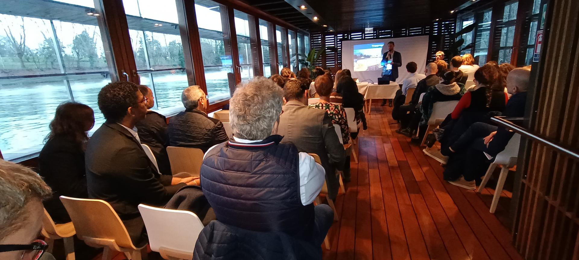 Salle comble sur la péniche L'Avant-Seine pour les v½ux de la Communauté Portuaire Seine Aval.
