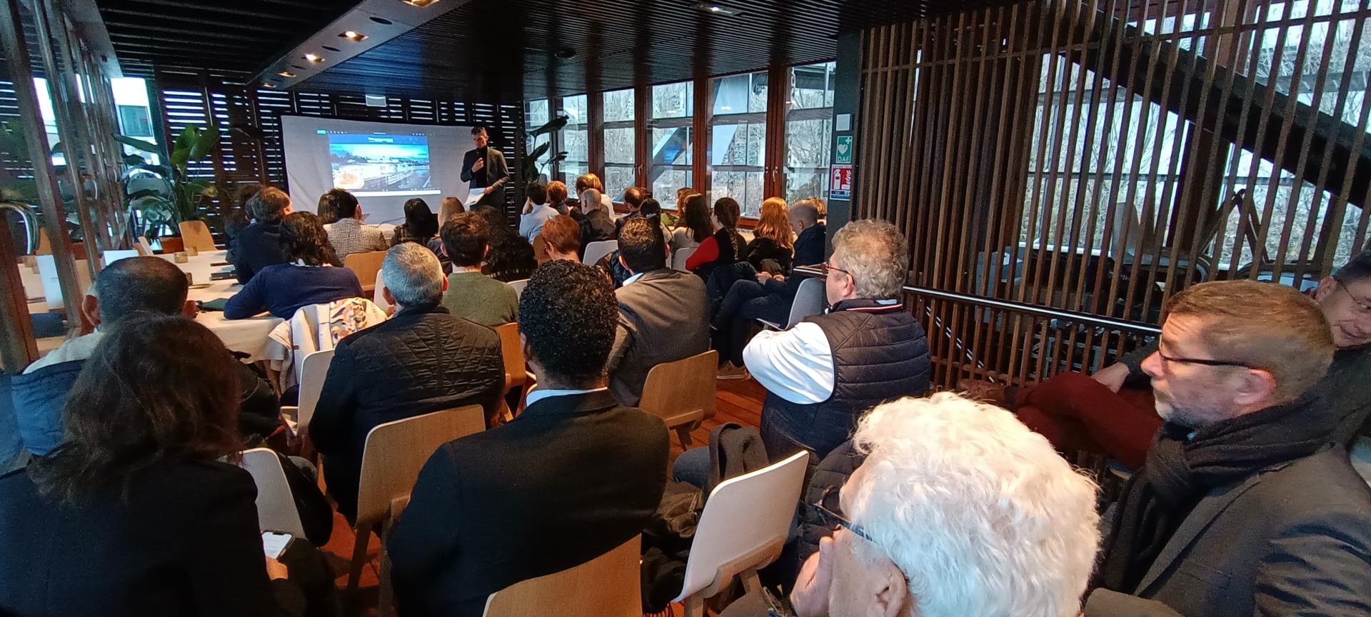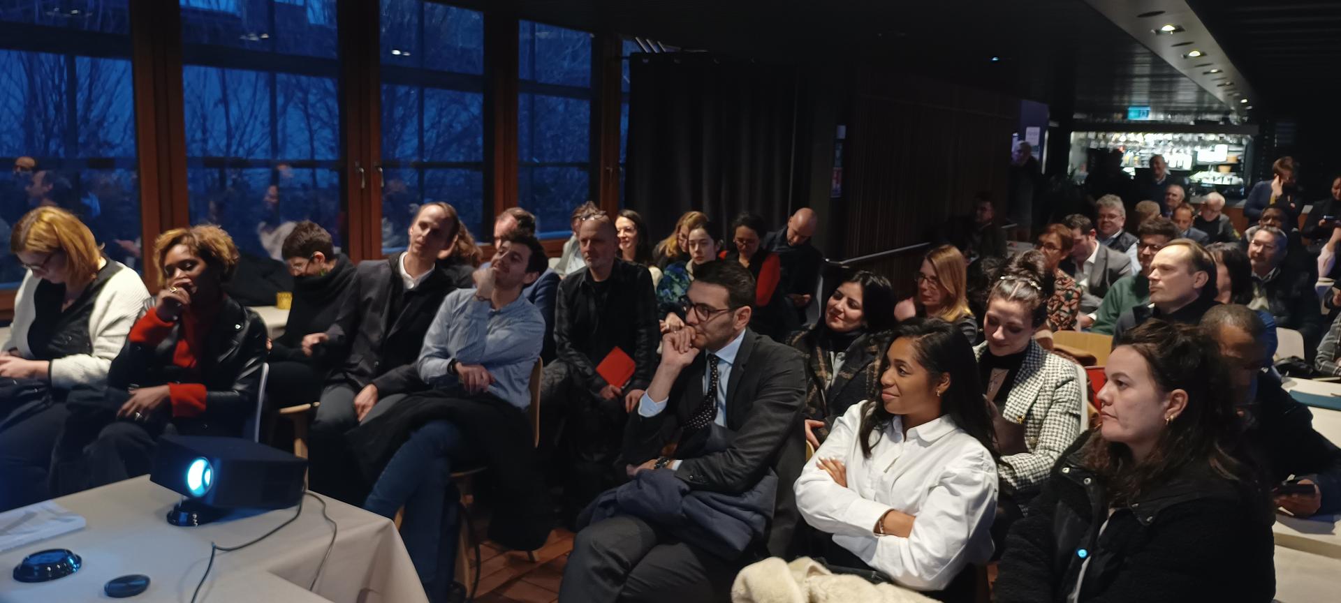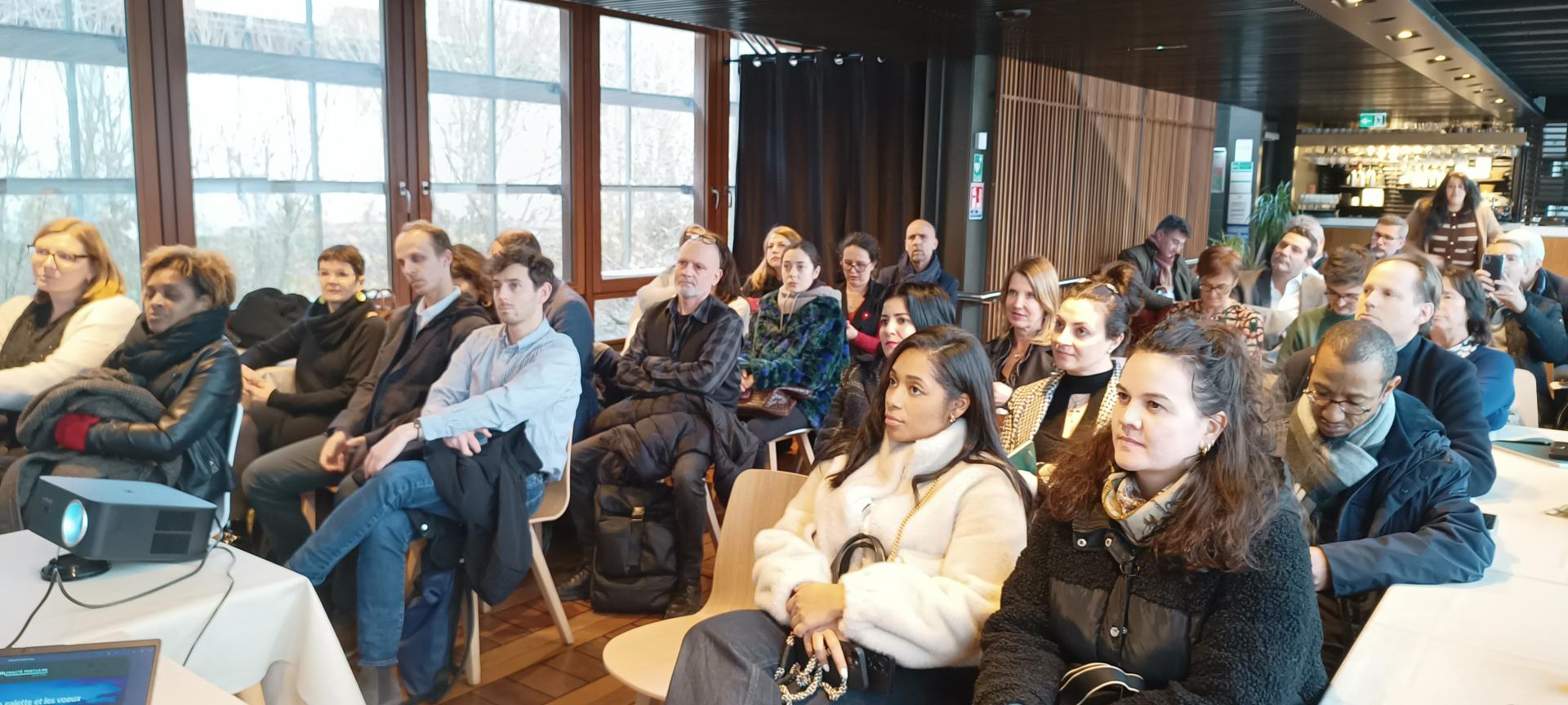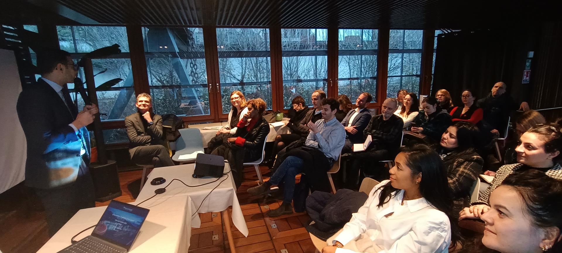 Salle comble sur la péniche L'Avant-Seine pour les v½ux de la Communauté Portuaire Seine Aval.