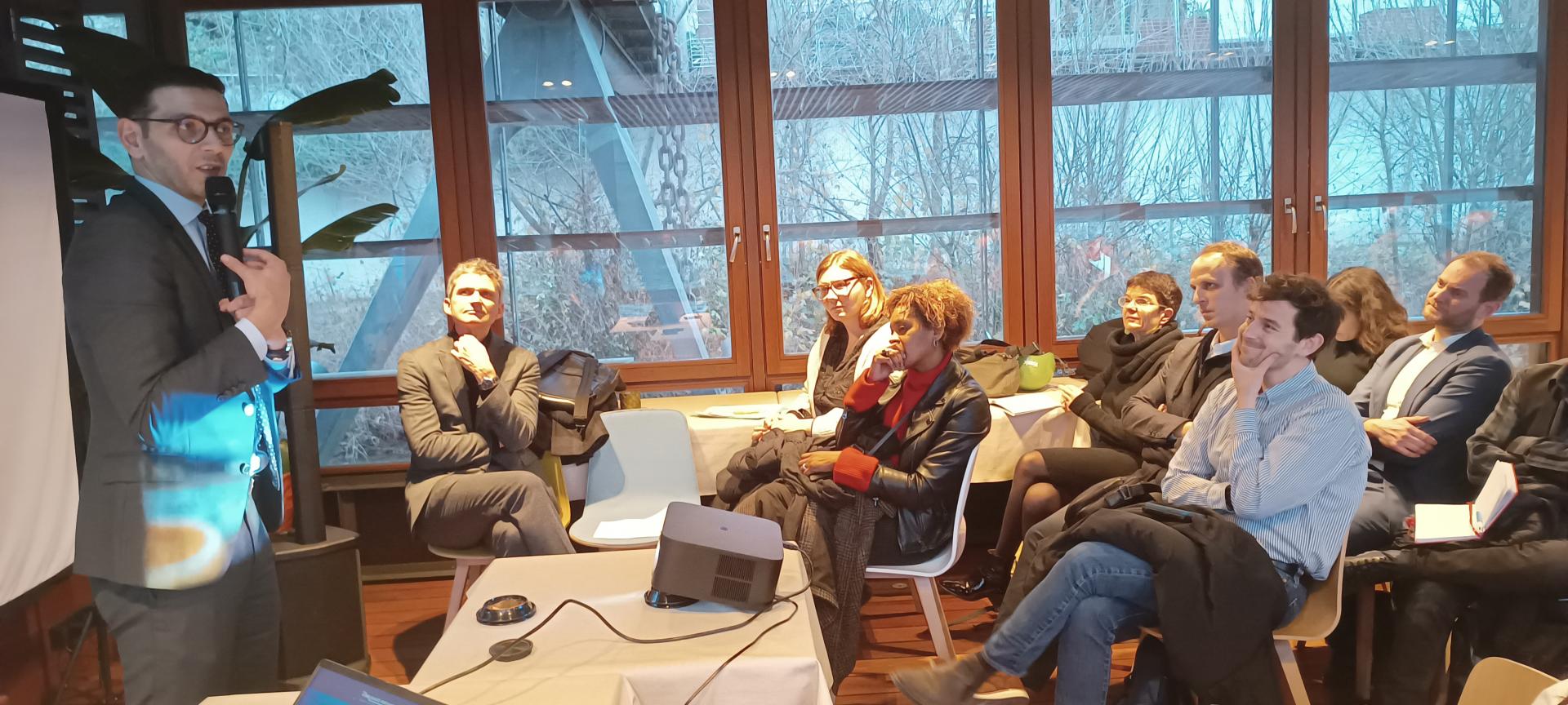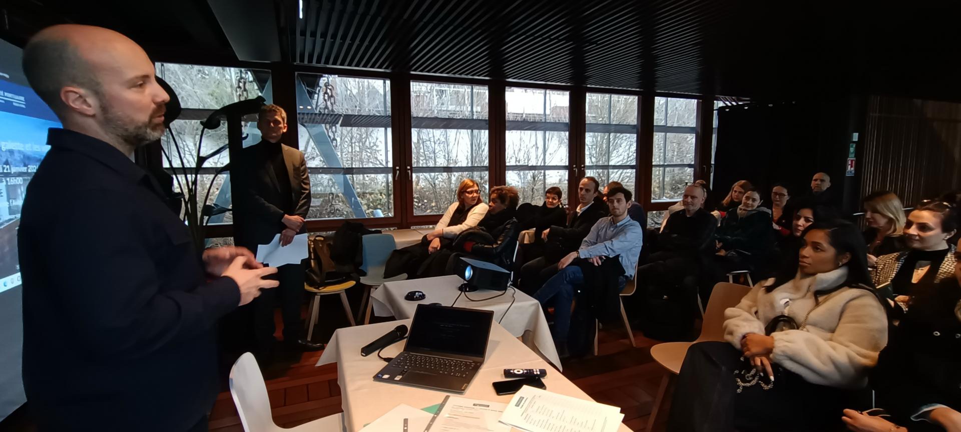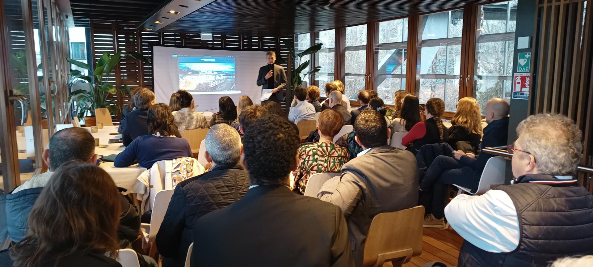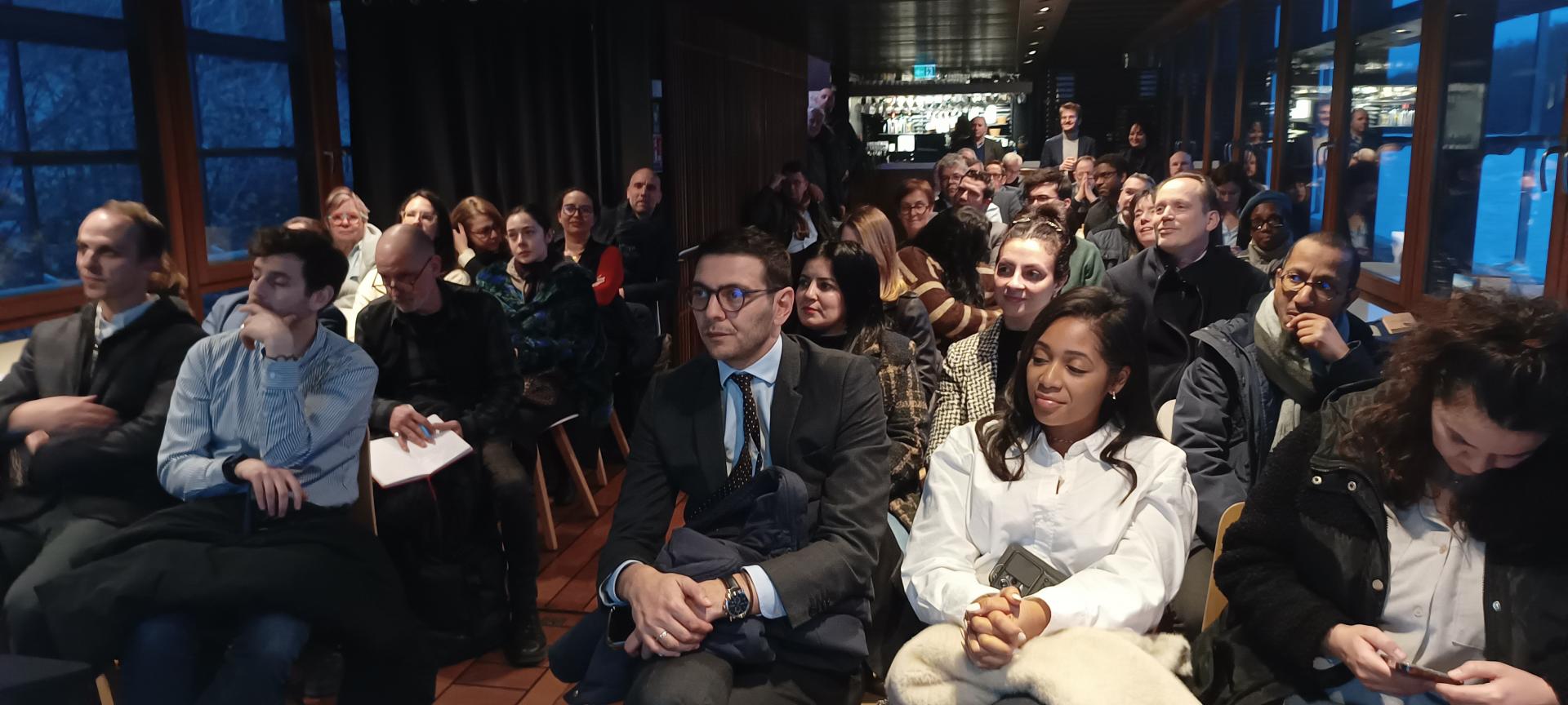 Salle comble sur la péniche L'Avant-Seine pour les v½ux de la Communauté Portuaire Seine Aval.