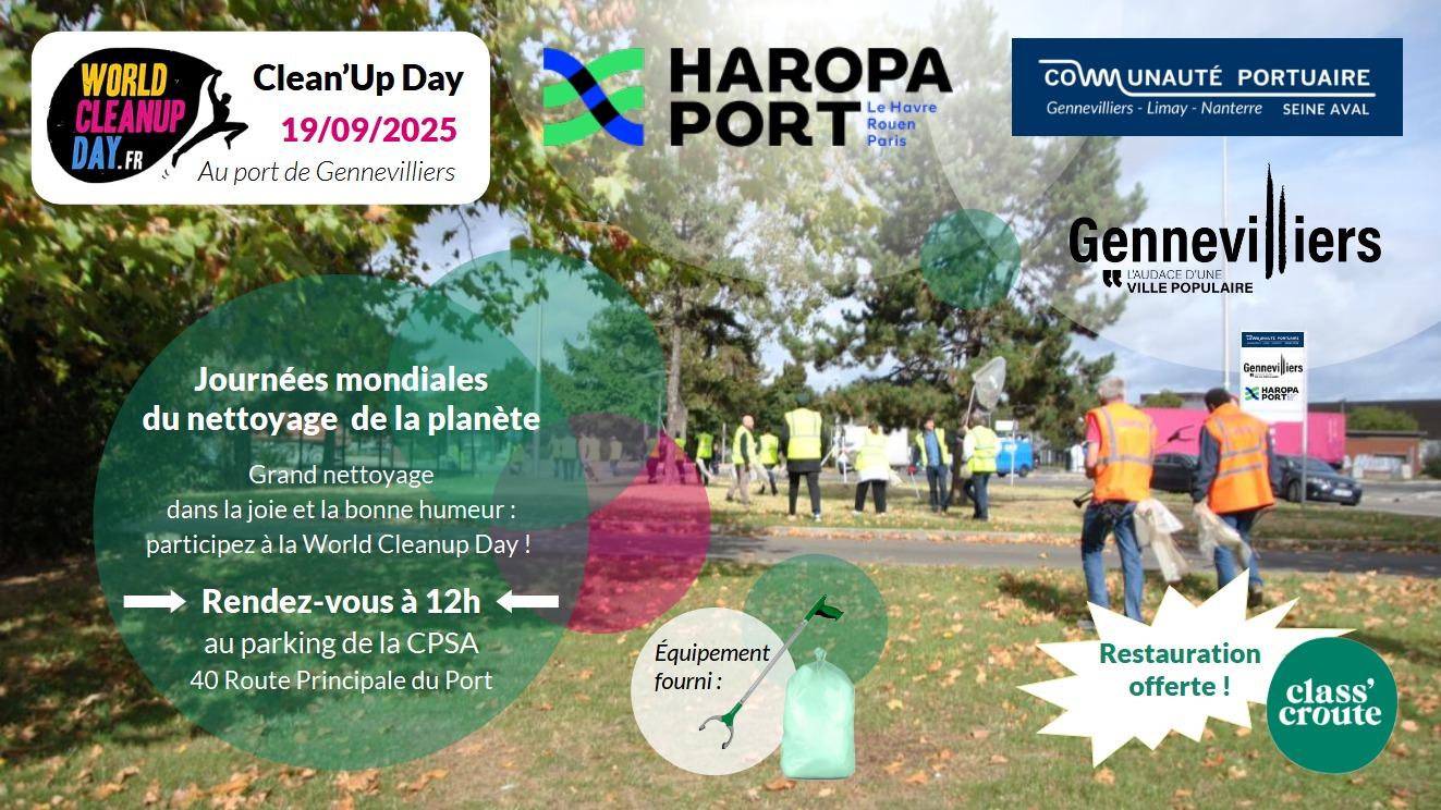 Dans le double cadre du Clean'Up Day et de "Ici commence la mer", la Communauté Portuaire Seine Aval, Haropa Port et la commune de Gennevilliers organise un un grand nettoyage dans la joie et la bonne humeur !...