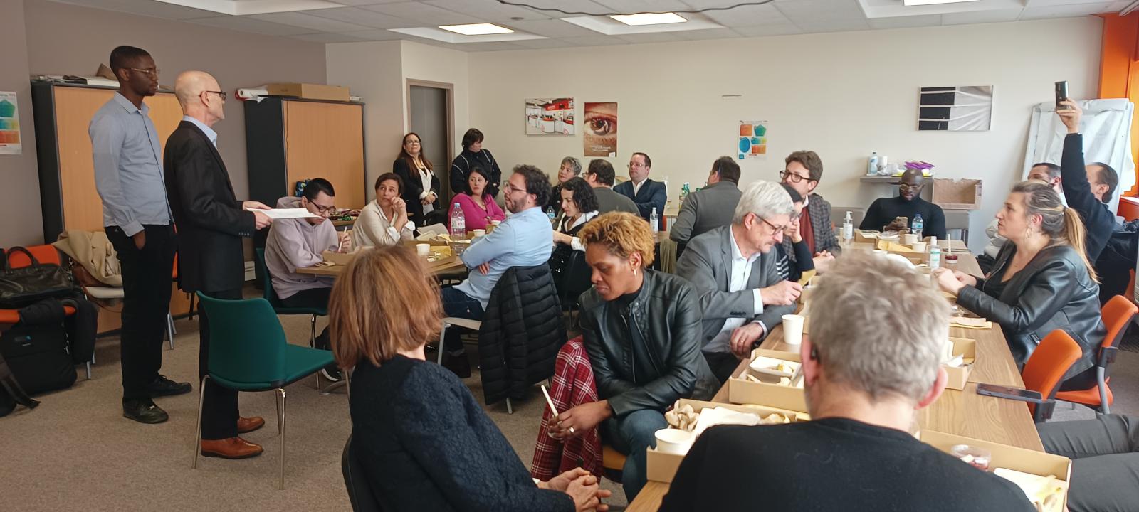 Temps fort de la réunion, bien sûr le déjeuner préparé par l'équipe Intervalle 92 du futur restaurant du port de Gennevilliers, mais surtout la signature de la charte C'Possible avec M. Philippe Varin Président et Mme Louisa Mazouz, proviseure du Lycée polyvalent Louise Michel à Epinay-sur-Seine.